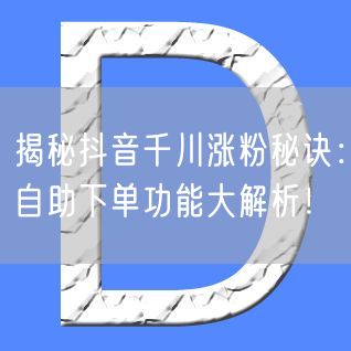 在抖音这个流量为王的平台上,千川涨粉成为了许多创作者和商家的核心目标。然而,如何高效实现粉丝增长却让不少人感到困惑。今天,我们将揭秘抖音千川涨粉的秘诀之一——自助下单功能,帮助大家快速提升账号影响力。